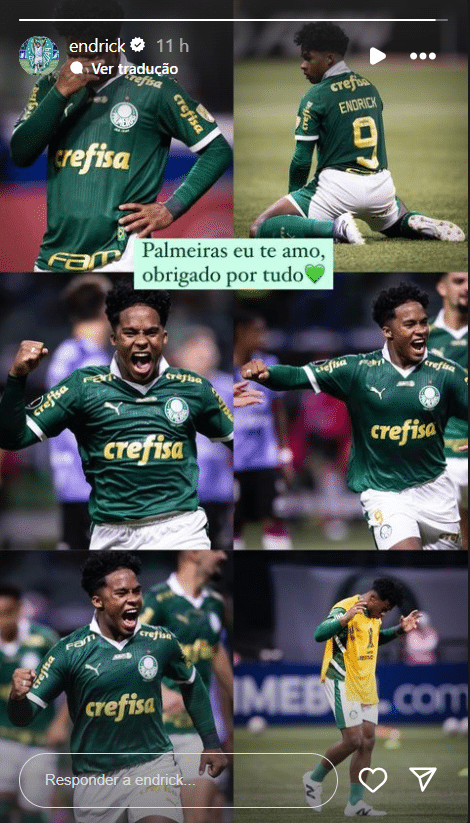 Na manhã de quinta-feira (16), Endrick fez uma postagem declarando seu amor ao Palmeiras, com toda pinta de despedida. Nas redes sociais, muitos palmeirenses expressaram apreensão, imaginando que ali estava um adeus.