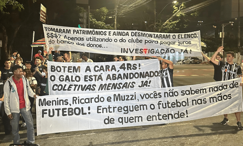 ‘O Galo está abandonado’: sem organizadas, protesto da torcida do Atlético-MG cobra o mínimo dos donos