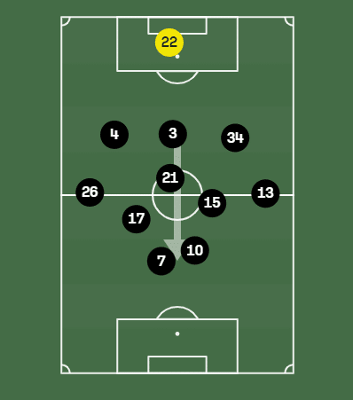 - Arana e Saravia: Alas. Papéis cruciais nas saídas de bola, aparecendo muito aberto, praticamente em cima da linha lateral, com poucas jogadas mais pelo meio. Com maior destaque para Arana, não só pela duas assistências, mas por ter cumprido melhor a função;