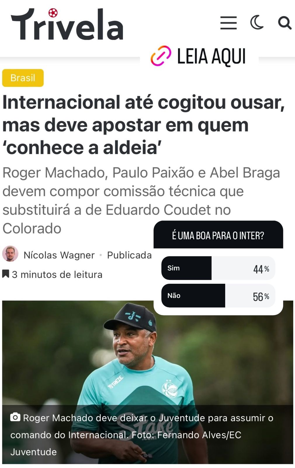 Questão financeira e de projeção à parte, ao aceitar a proposta do Inter, Roger corre um risco alto. Se o trabalho no Colorado não vingar, ele poderá se tornar persona non grata nos três maiores clubes do Rio Grande do Sul.