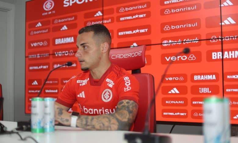 Após atuar somente seis minutos em sua primeira passagem, em 2022, Bruno Gomes falou sobre o retorno ao Internacional ao ser apresentado pelo clube nesta terça-feira (20)