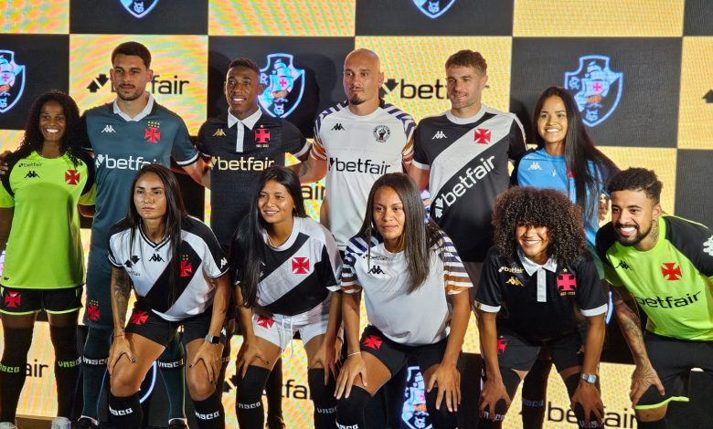 Em evento realizado na noite desta quinta-feira, o Vasco apresentou como as camisas do clube ficaram com marca da Betfair. E a grande novidade foi que, na camisa I, preta, a logo da casa de apostas ficou na transversal, acompanhando a faixa branca.