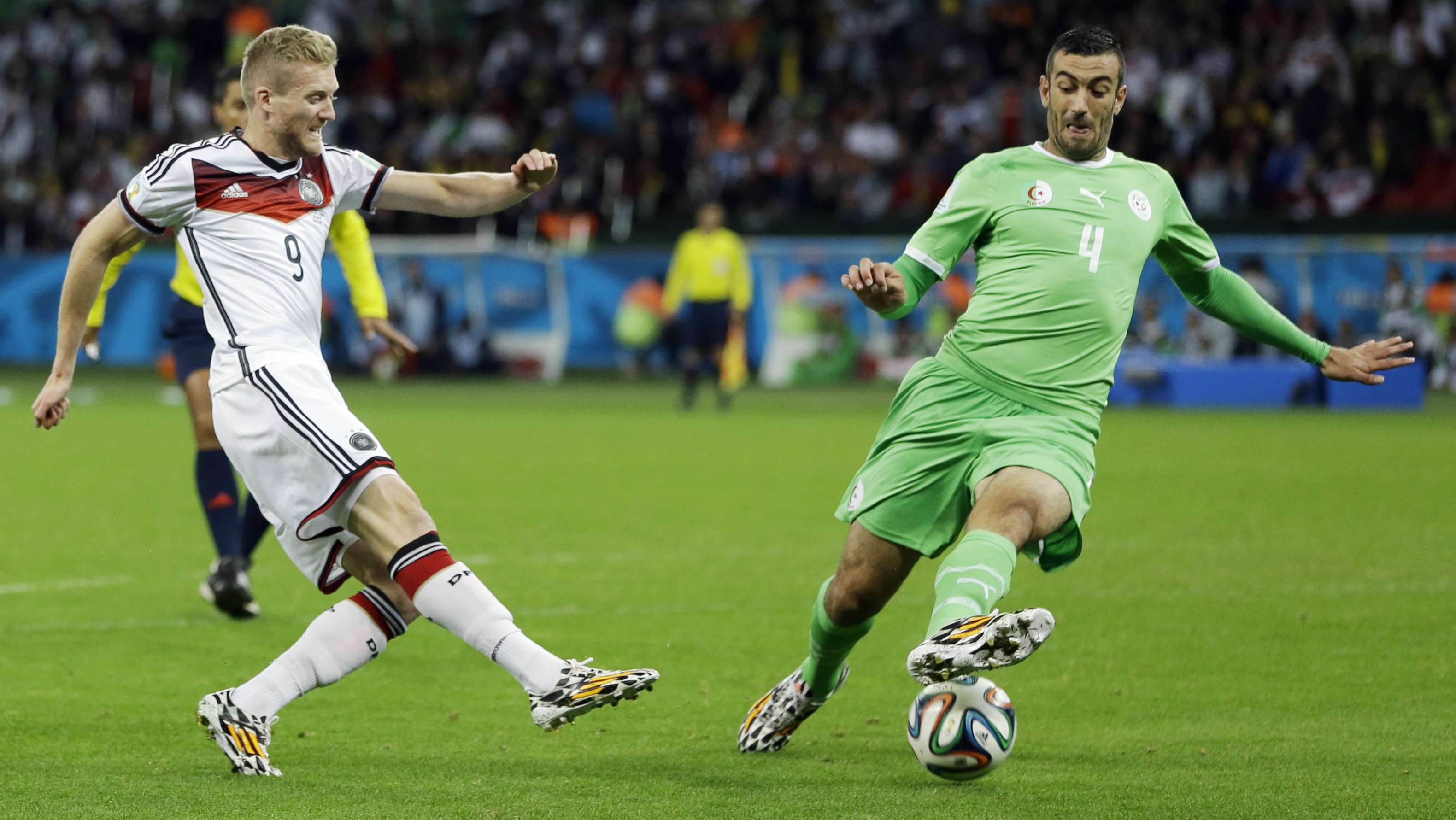 Movidos pela possibilidade de causar a grande zebra do Mundial até agora – e também pela promessa de um empresário argelino de que quem fizesse um gol na Alemanha ganharia um Porsche Cayenne -, os jogadores da Argélia fizeram um primeiro tempo bastante surpreendente. Os alemães tiveram a posse de bola em boa parte da etapa inicial, mas as chances mais perigosas foram mesmo dos argelinos.
