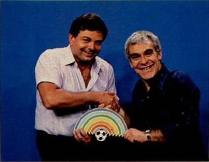 Debate da TV Bandeirantes, com a participação do volante Elzo e do cantor e compositor João Nogueira, no “Jornal da Copa” da noite após Brasil 4×0 Polônia, pelas oitavas de final da Copa de 1986, em 16 de junho. Postado no YouTube por Flávio Baccarat
