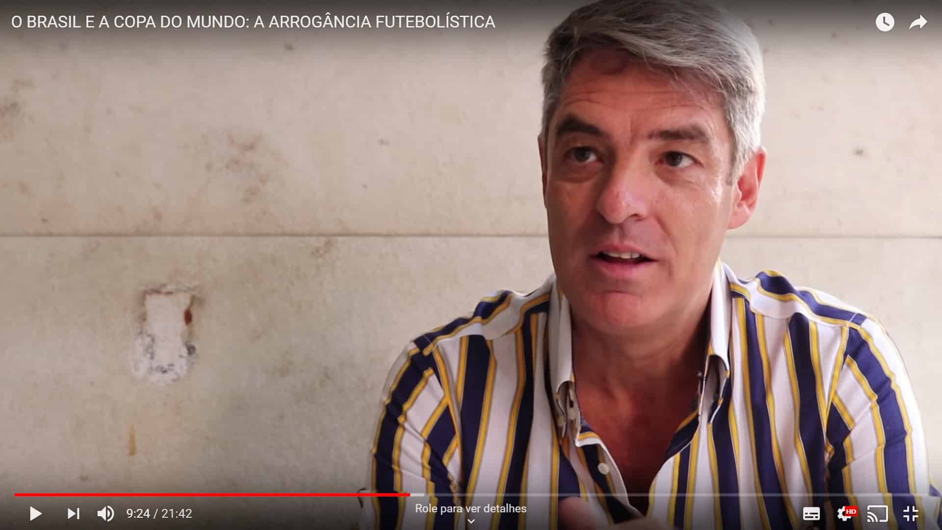 O documentário tem 22 minutos e muitas boas análises sobre o que se vê no futebol brasileiro em época de Copa. O brasileiro é arrogante quando se trata de Copa do Mundo? A história de falar de amarelinha, somos pentacampeões, eles têm que aprender com a gente, o quanto isso se baseia em futebol jogado e o quanto isso é um estereótipo construído a partir de uma ideia reforçada a cada Copa do Mundo? Há muitas questões que valem a pena serem discutidas. E certamente vale a pena ouvir o que esses craques do jornalismo têm a dizer.