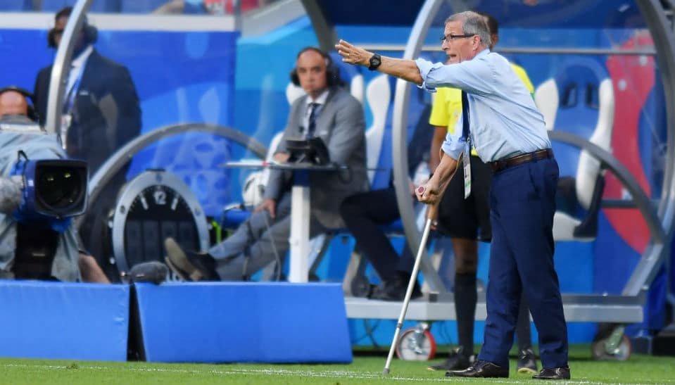 A grande imagem de Tabárez aconteceu na estreia do Uruguai na Copa do Mundo, contra o Egito. O treinador não se conteve quando José María Giménez anotou o gol da vitória agônica, nos instantes finais do segundo tempo. Num reflexo natural, instintivo, largou a bengala e levantou-se urrando “Uruguay Nomá”, Uruguai e nada mais, o grito de um povo. As limitações nunca o impediram de seguir firme à beira do campo, instruindo seus jogadores e oferecendo seu apoio. Não são empecilho para que continue pensando com clareza, algo que se percebe há anos, ao longo do processo.