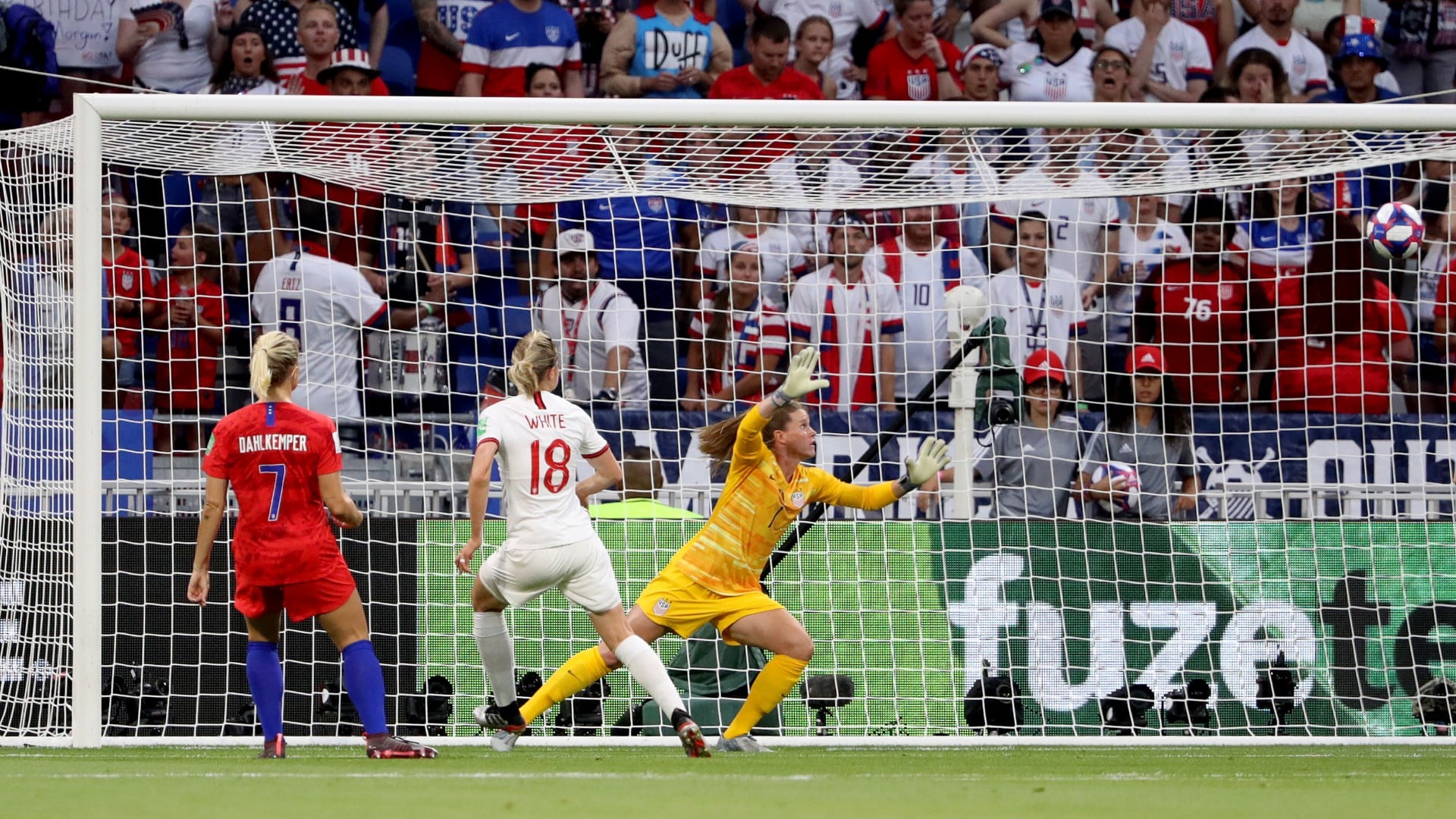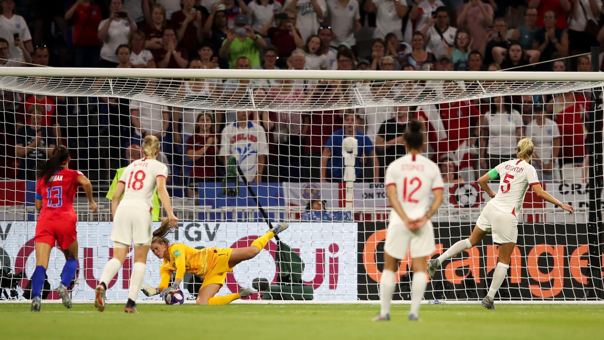 Nikita Parris já tinha perdido dois pênaltis ao longo da campanha, então ela não foi para a cobrança. Quem assumiu a responsabilidade foi a zagueira e capitã Stephanie Houghton. Ela cobrou fraco, mal, no canto, e a goleira Alyssa Naeher defendeu com tranquilidade. Nada de gol. As americanas seguiam em vantagem.