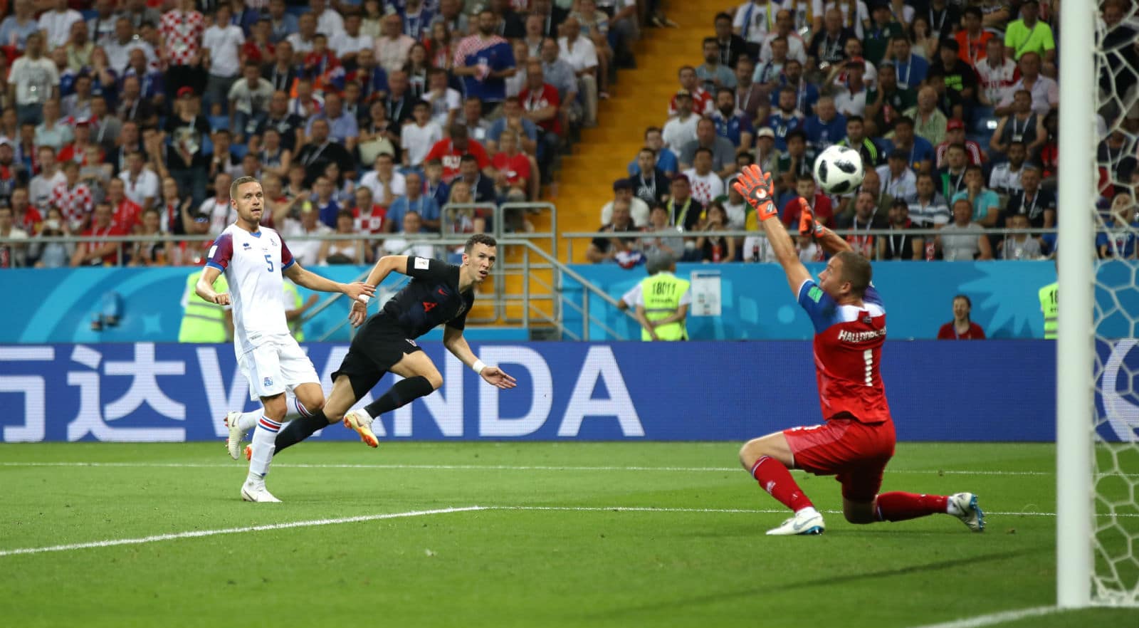 Os primeiros 25 minutos de jogo não tiveram muita ação em Rostov-on-Don. A Croácia dominou a posse de bola, mas era um time burocrático, que não mostrava muito interesse e também não conseguia passar pelos meio-campistas da Islândia, estes fazendo um trabalho tão bom quanto o visto contra a Argentina. Ofensivamente, porém, os islandeses não ameaçaram muito a meta croata, confiando nos cruzamentos. A única finalização veio em um chute de Mateo Kovacic, que ainda assim acabou bloqueado pela defesa.