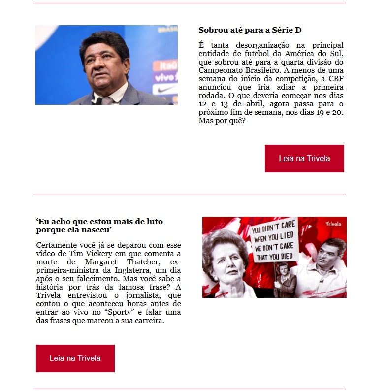 Apesar das novidades, a newsletter da Trivela continua sendo aberta e gratuita para os antigos e novos assinantes. Venha você também fazer parte da nossa comunidade, que já conta com milhares de assinantes.