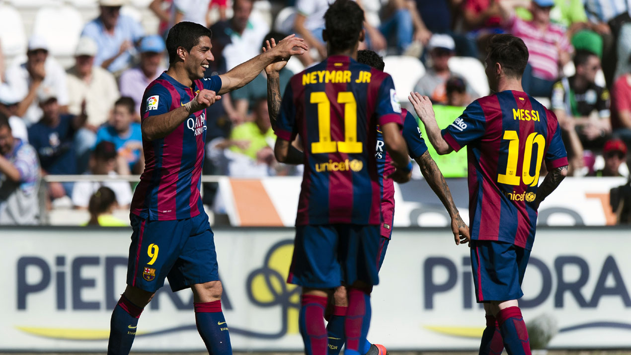 Foram três gols de Luis Suárez, dois gols de Lionel Messi, um de Neymar, um de Rakitic e um de Gerard Piqué. Suárez, assim, chegou a incríveis 24 gols na temporada, sendo 16 deles só no Campeonato Espanhol. Considerando que ele estreou apenas no dia 25 de outubro e perdeu 11 jogos no começo da temporada (oito pela liga, três pela Champions), é algo que chama a atenção.