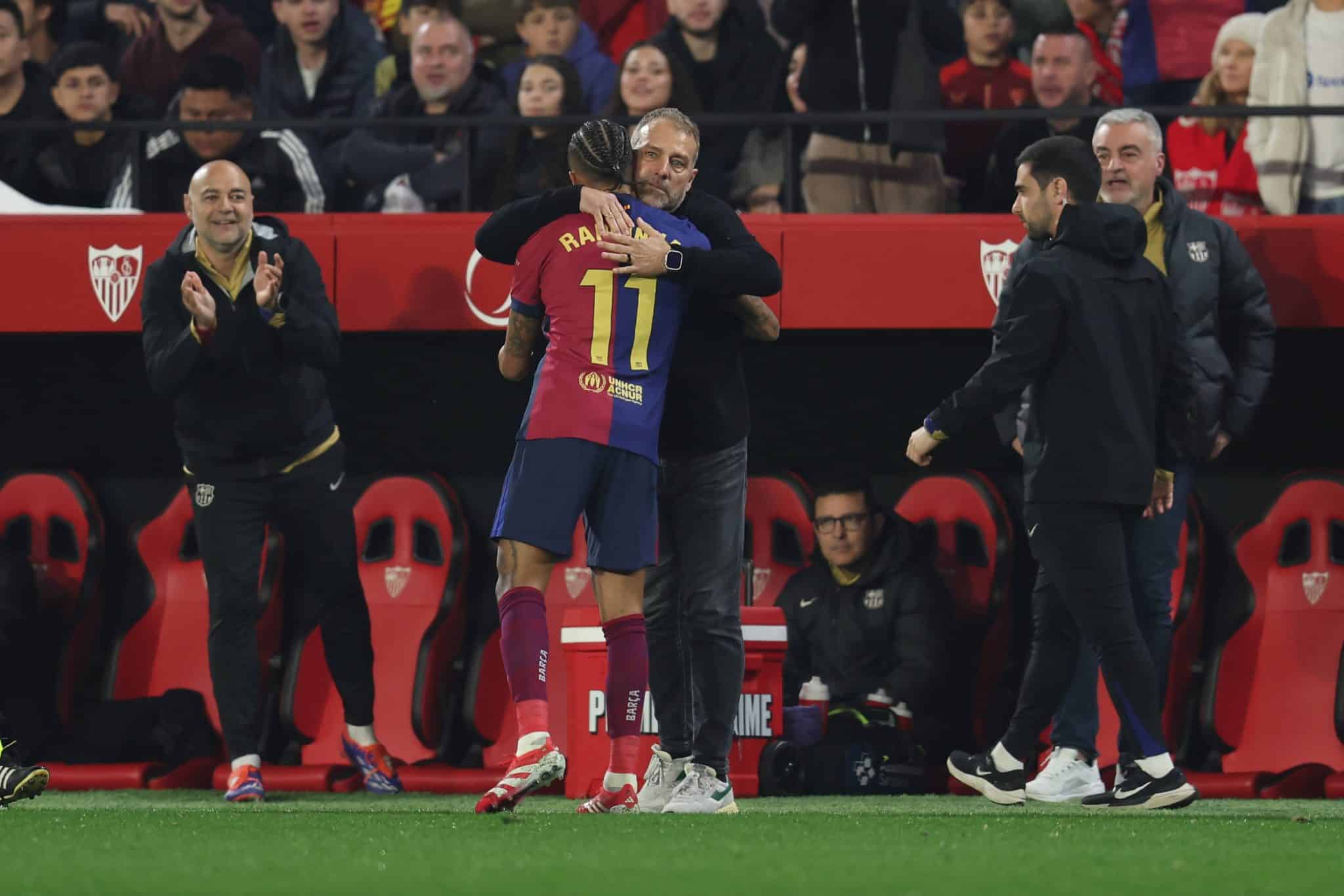Aos 10 minutos da etapa final, o Sevilla reclamou de um pênalti de Balde em Sow, porém o árbitro mandou seguir. Na sequência, a bola acabou em Raphinha, um dos protagonistas do Barcelona na temporada. O brasileiro mostrou porque está sendo cotado para brigar pela próxima Bola de Ouro, se livrou da marcação e acertou um belo chute de direita, a “perna ruim”, de fora da área para deixar o 3 a 1 no placar.