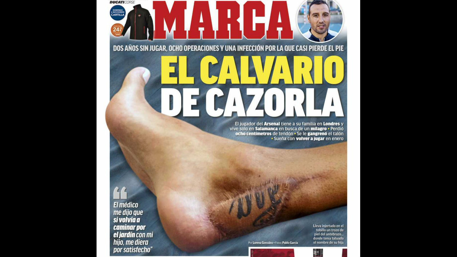 Capa do Marca que revelou ao mundo o calvário de Cazorla. Imagem: Reprodução