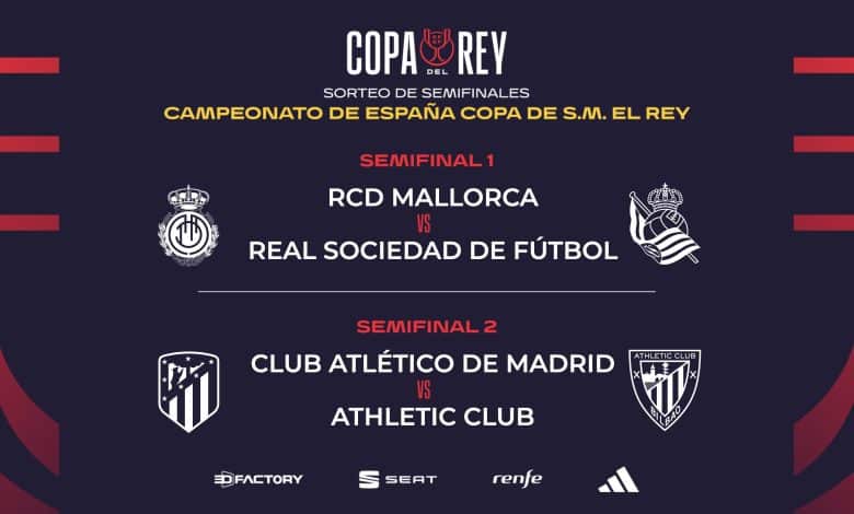 Real Sociedad e Mallorca decidirão o primeiro finalista da Copa do Rei, enquanto Athletic Bilbao e Atlético de Madrid e se enfrentam do outro lado da chave