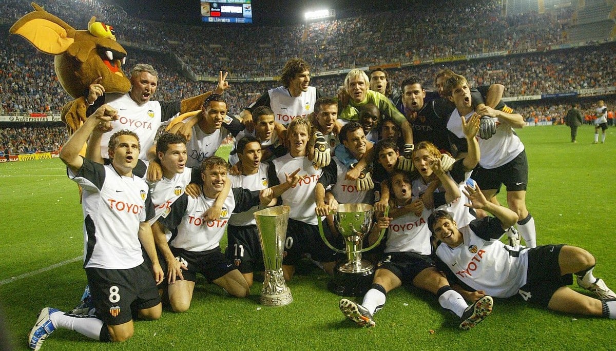 Com um time cheio de lendas do Mestalla, o Valencia desbancou os Galácticos do Real Madrid e faturou o doblete com a Copa da Uefa