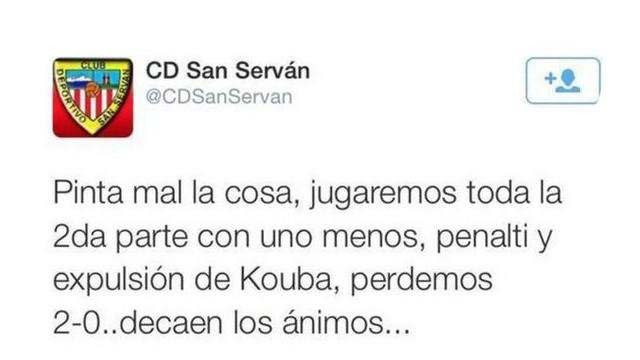 A história fica muito melhor. Porque o técnico do San Serván, Luis Miguel Patiño, em entrevista à Rádio Marca, explicou o que aconteceu. Segundo ele, antes de ir para o estádio, a delegação do clube cruzou com quatro jovens que haviam acabado de terminar uma noitada inteira em festas. O responsável pelas redes sociais não poderia trabalhar na partida contra o Albuquerque porque tinha que ir a uma primeira comunhão. Pediu que o técnico cuidasse do Twitter durante a partida, mas, sensato, Miguel Patiño respondeu que tinha que prestar atenção no jogo. Os quatro jovens ficaram com a incumbência de passar as informações para quem cuida da conta e decidiram pregar uma peça.