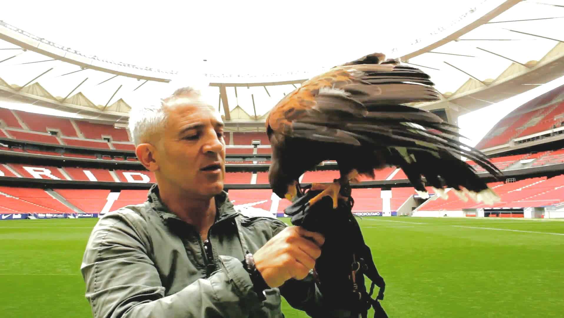 Castaño Romero conta que, só para cuidar do Wanda Metropolitano, comanda cinco aves: quatro falcões e uma águia. “Dependendo da época, ou da semeadura do gramado, elas vêm voar mais ou menos (frequentemente) ao estádio, mas sempre estão preparadas.”