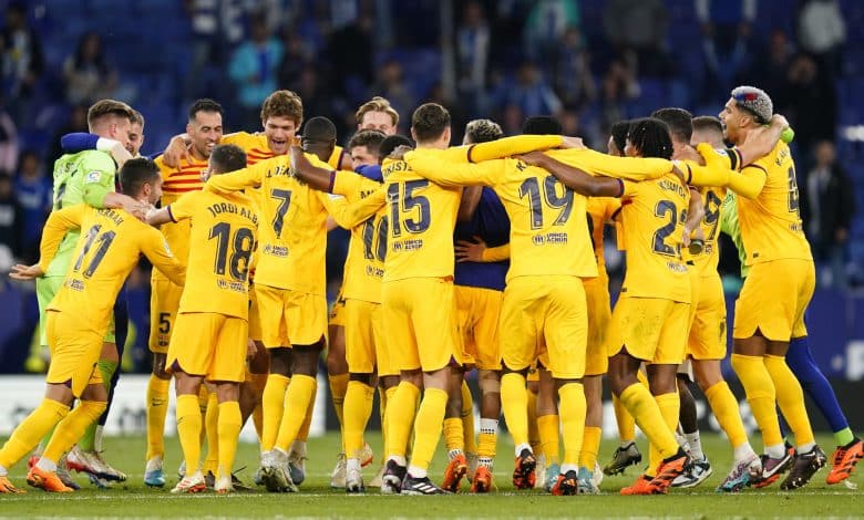 No início do segundo tempo, o Barcelona ainda ampliou o placar. Em um lançamento de Frenkie De Jong, Jules Koundé apareceu atrás da defesa para tocar de cabeça e ampliar o placar para 4 a 0. Ao mesmo tempo que a felicidade pelo já esperado título aumentava no lado do Barcelona, no lado do Espanyol, a tristeza tomava conta das arquibancadas.