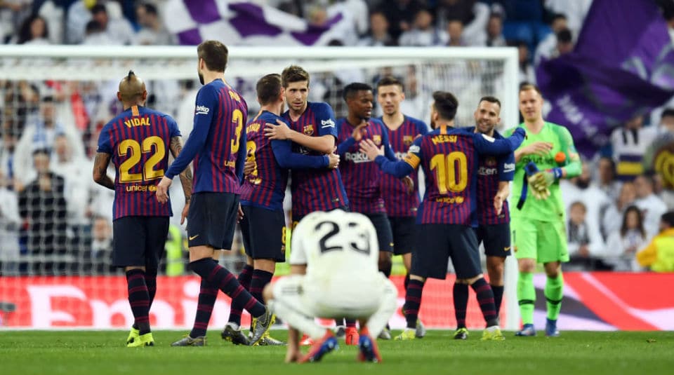 O Estádio Santiago Bernabéu presenciou uma das melhores atuações do Real Madrid na temporada. Durante 70 minutos, os merengues deram sufoco no Barcelona. Bloquearam os caminhos dos rivais e aproveitaram as avenidas do campo para atacar com extrema velocidade. No entanto, futebol é feito de eficiência. E poucos placares recentes são tão díspares ao que aconteceu em campo quanto os 3 a 0 do Barcelona nesta quarta-feira. Depois do empate por 1 a 1 no Camp Nou, os blaugranas consumaram a classificação à final da Copa do Rei. Parecia até que os papéis haviam se invertido. O Real, um time reconhecido por ser letal, desperdiçava muitas chances. Vinícius Júnior fazia uma partidaça, mas pecava nas conclusões. Enquanto isso, o Barça era mero figurante, até o momento em que soube decidir. Resguardados por um Ter Stegen outra vez enorme, os catalães contaram com as escapadas de Dembélé e o poder de fogo de Luis Suárez, recuperado na hora certa. O apito final deixava uma sensação estranha. Os visitantes comemoravam, mesmo distantes de uma atuação que justificasse tal diferença no placar.
