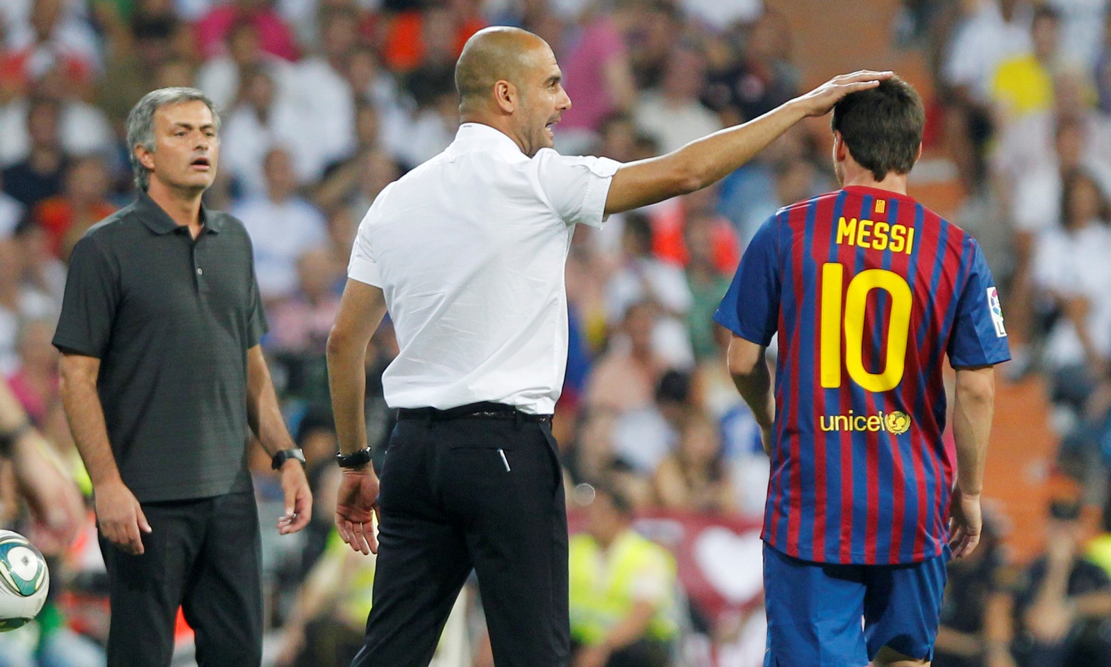 Além disso, Mourinho aproveitou a oportunidade para rebater as afirmações de Guardiola, de que não existe sistema tático para brecar Messi: “Se você está vendo um jogo de Messi, não pode se esquecer que também é técnico. Você aprecia tanto que às vezes esquece que está lá para trabalhar. Você precisa pensar sobre o que esse cara faz. Todas as vezes que eu enfrentei Messi, eu gastei horas estudando e tentando pará-lo. Fui bem sucedido em algumas vezes, em outras não. Com a Inter, paramos nos dois jogos. A melhor maneira de fazer isso é no mano a mano, melhor do que envolver a todos. Quando você vai para o mano a mano, vai com um poder similar. Todas as vezes eu pensava qual a melhor maneira coletiva de dá-lo uma partida difícil – e não estou falando em pará-lo. Acho que é a expressão correta. Não é sobre pará-lo, mas dificultar sua vida. Isso é o máximo que você pode fazer contra ele”.