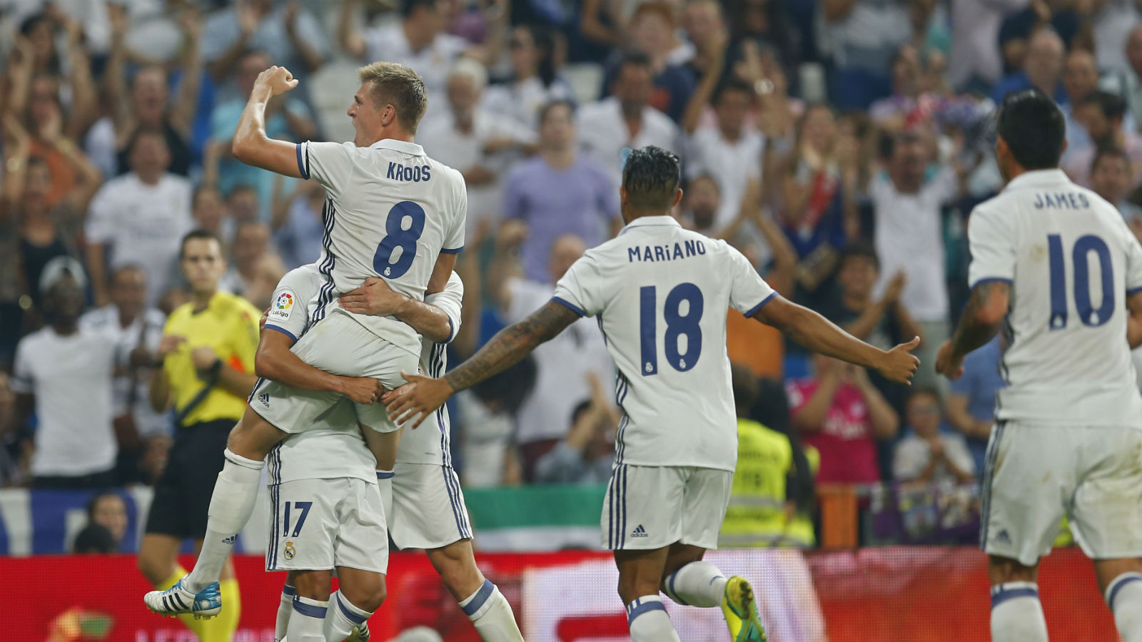 O Real Madrid ainda precisa lidar com os desfalques, depois de uma temporada intensa para alguns de seus protagonistas. Não é isso, porém, que atrapalha o bom início do time em La Liga. Os merengues penaram um bocado, mas chegaram aos seis pontos, com a primeira vitória no Estádio Santiago Bernabéu. Em um jogo no qual o Celta contou com a qualidade de seu goleiro e também com uma quantia de sorte, a vitória do time da casa só saiu nos minutos finais, com Toni Kroos. Um belo gol para definir o placar em 2 a 1.