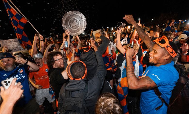 A Major League Soccer possui dois títulos por temporada. O mais importante é a MLS Cup, os mata-matas que definem o campeão, mais marcado na história. Porém, também existe o chamado ‘Supporters Shield’, entregue à equipe de melhor campanha na fase de classificação. O time que soma mais pontos também recebe uma honraria, embora secundária dentro da estrutura da liga. E o vencedor do Supporters Shield da MLS em 2023 celebrou sua conquista neste final de semana. O FC Cincinnati conquista um feito inédito em sua breve história, e bastante significativo, para um time que foi lanterna da liga em três temporadas consecutivas de 2019 a 2021.