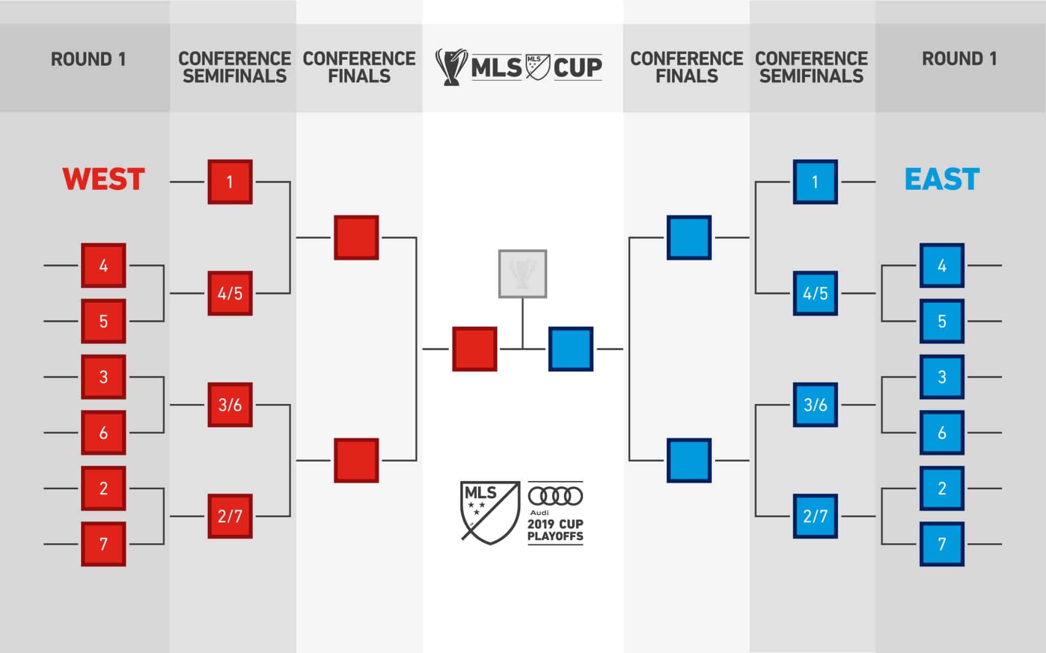 Dos 24 times que disputarão a MLS em 2019, 14 deles vão para o mata-mata, sendo sete de cada conferência. Só o primeiro colocado ganhará folga na primeira rodada dos playoffs, esperando o seu adversário na semifinal. Acaba também a regra que o primeiro colocado enfrenta o time de pior ranking. A tabela passa a ser fixa: o primeiro colocado enfrentará o vencedor do duelo entre quarto e quinto. O terceiro colocado enfrenta o sexto, enquanto o segundo enfrentará o sétimo. Os times mais bem colocados na fase regular jogam em casa. Por lá, já existia um incentivo para os primeiros colocados de cada conferência manterem o ritmo: o melhor time da fase regular ganha uma taça menor, o Supporter’s Shield, e garante vaga na Liga dos Campeões da Concacaf. Além disso, a melhor campanha garante que disputará todos os jogos do playoff em casa, o que passa a ser ainda mais importante com jogo único na semifinal, ao contrário dos jogos de ida e volta que existiam até este ano de 2018.