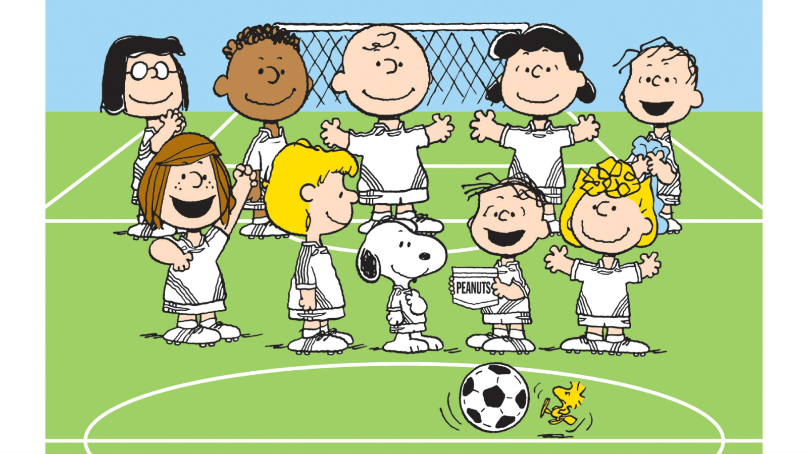 O “soccer” estava um pouco distante da realidade de Schulz, que torcia mesmo para os Giants no beisebol. É até fácil encontrar desenhos soltos ou produtos de seus personagens jogando futebol. Porém, o esporte só aparece nas tirinhas em três oportunidades. Em uma delas, Charlie Brown analisa o porquê de Lucy gostar tanto no esporte. Na outra, Snoopy resolve bater uma bolinha com Woodstock. E, por último, o futebol é apenas mencionado, como um dos motivos para o sumiço de Peggy Jean, uma das paixões de Charlie Brown, das histórias.