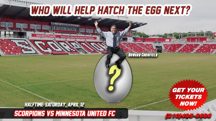 Provavelmente não há jeito mais engraçado de apresentar um mascote do que esse do San Antonio Scorpions. Para começar, houve toda uma campanha de marketing, com direito a banner com o presidente do clube americano sentado em cima de um ovo. No intervalo da estreia da temporada na North American Soccer League, contra o Minnesota United, o ovo quebrou.