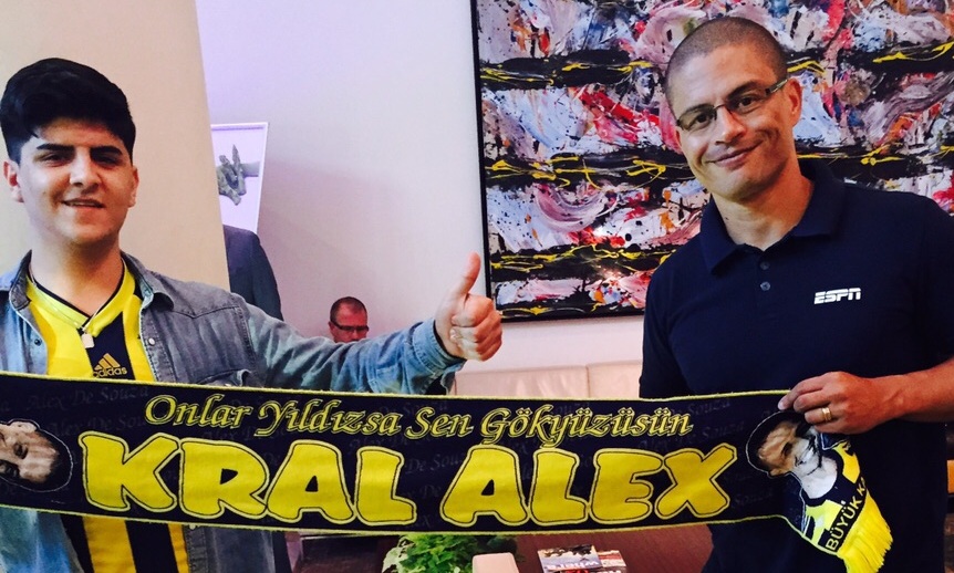 Em sua primeira cobertura internacional como comentarista da ESPN Brasil, o ex-jogador consagrado em Istambul após quase uma década de muita dedicação prestada ao Fenerbahçe mobiliza parte dos inúmeros turcos que residem na capital alemã. O assédio e a demonstração de carinho são tão intensos que até geraram consequências: a ESPN teve de providenciar segurança extra, até a polícia foi acionada pelo hotel e, em uma das saídas da Alex para gravar boletins pela cidade, a equipe da TV precisou de driblar os torcedores ao sair por uma porta alternativa.