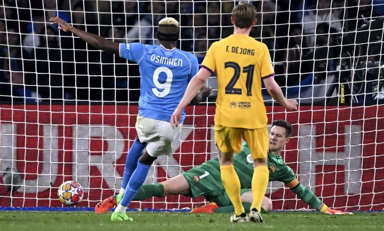 O Barcelona não tomou conhecimento do Napoli, mas Osimhen conseguiu empatar nas oitavas de final da Champions League após gol de Lewandowski
