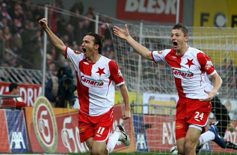 Como vice-campeão tcheco, o Slavia Praga causou impacto na Champions 2007/08. O grande feito aconteceu contra o Ajax, durante a última fase preliminar. Na época, os Godenzonen contavam com Luis Suárez, Jaap Stam, Klaas-Jan Huntelaar, Thomas Vermaelen e Maarten Stekelenburg. Os tchecos venceram a partida de ida por 1 a 0, dentro da Amsterdam Arena, e ganharam também em Praga, por 2 a 1, graças à ótima atuação do goleiro Martin Vaniak. A imposição valeu uma vaga na etapa principal da LC, na qual o Slavia encarou Arsenal, Sevilla e Steaua Bucareste em sua chave.