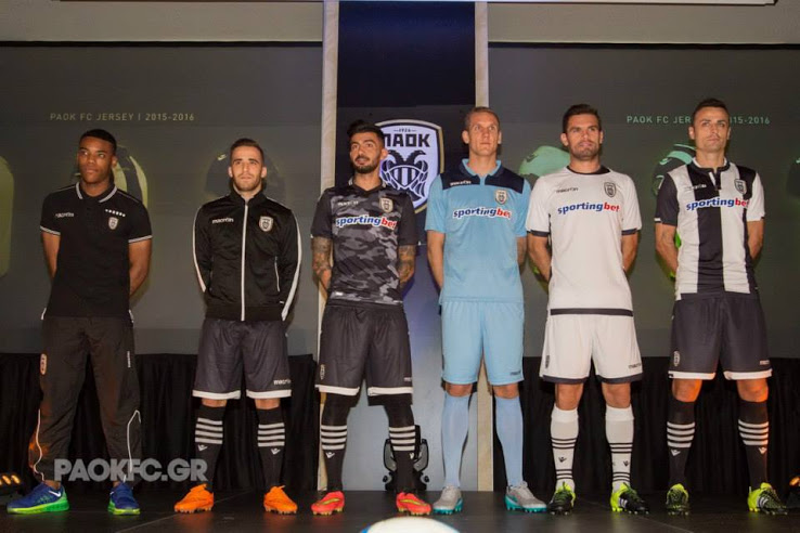 O PAOK anunciou – ainda que meio tarde – os uniformes para a temporada 2015/16. A Macron, marca esportiva responsável pelo desenvolvimento, traz as cores tradicionais do clube na primeira e na segunda camisa. Na terceira, uma novidade: o uniforme em estilo militar, todo camuflado.