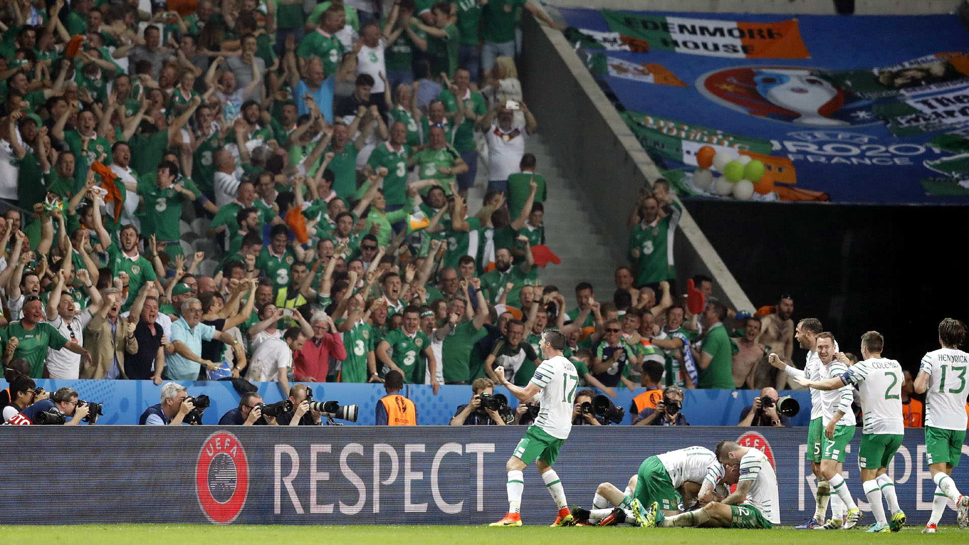 Wes Hoolahan, que minutos antes perdeu uma grande chance de marcar, cruzou da intermediária na medida para Robbie Brady subir de cabeça, se antecipar a Sirigu, que saiu mal, e mandar para as redes. Brady saiu correndo em disparada na direção dos torcedores irlandeses, que comemoraram demais, como era esperado. O time avançava com o resultado. Vira o segundo melhor terceiro colocado, com quatro pontos e saldo de menos dois gols – atrás apenas da Eslováquia entre os terceiros colocados.