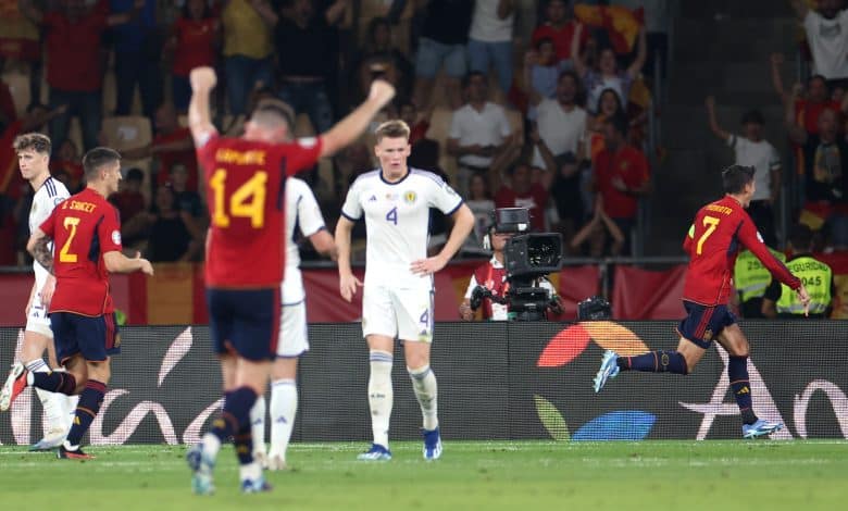 Jogando em Sevilha, Espanha devolve o placar por 2 a 0 sofrido na Escócia e fica em boa situação para conseguir a classificação direta para a Eurocopa 2024