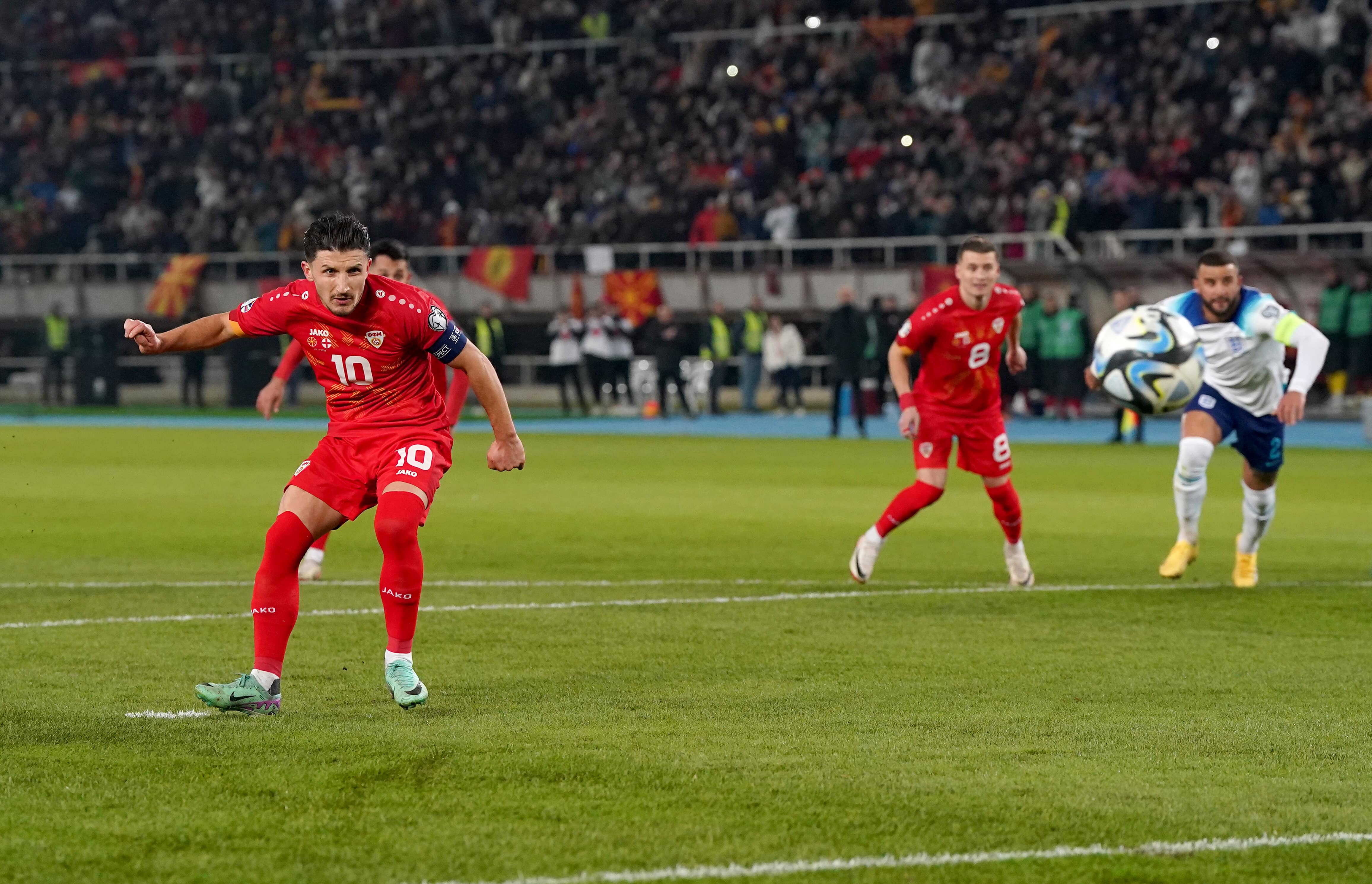 Macedônia do Norte se aproveita de erros da Inglaterra e abre o placar de pênalti