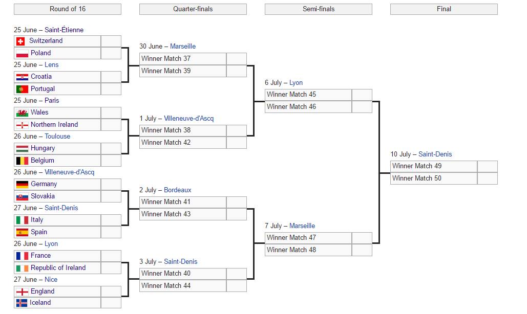 Duas chaves. Uma cheia de tradição, outra cheia de esperança. Depois de 36 jogos, a Eurocopa definiu os seus confrontos de oitavas de final.
