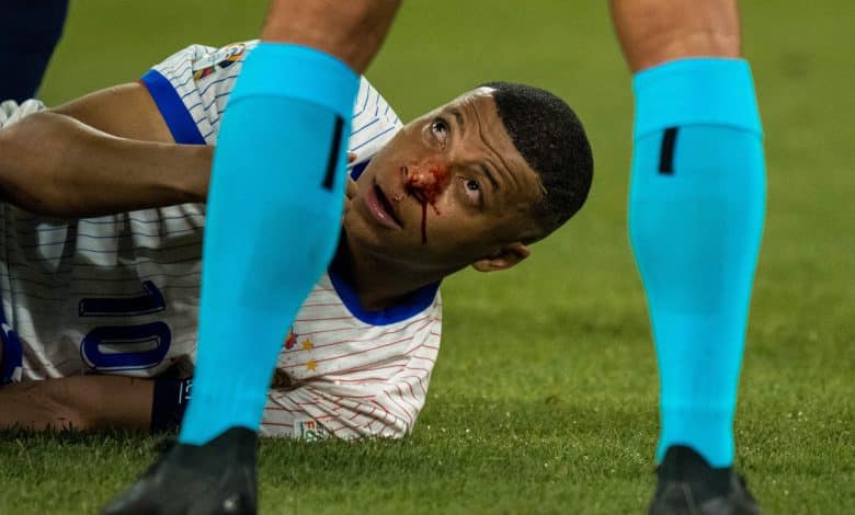 Apesar da vitória na estreia da Eurocopa, as notícias não são nada boas para a França. Principal jogador da seleção comandada por Didier Deschamps, Kylian Mbappé se chocou com o ombro do zagueiro Danso e teve um grande sangramento no nariz.