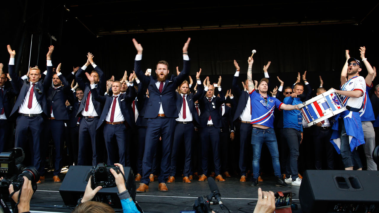 A torcida fez a festa em Reykjavik ao ouvir o discurso dos jogadores, em especial do capitão Aron Gunnarson, o barbudo com cara de viking que estava sempre à frente do time para celebrar com a torcida os resultados incríveis do time na competição. E como não poderia faltar, os torcedores, aos milhares, repetiram o gesto que os notabilizou: as palmas ritmadas por um bumbo, com um grito viking após cada palma.