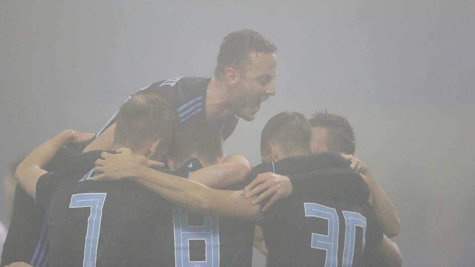 Uma densa neblina tomou o gramado ao longo da noite em Zagreb, colocando em pauta até mesmo o adiamento do compromisso. Foi difícil assistir ao jogo nas arquibancadas e mesmo acompanhá-lo através da televisão. A coisa estava tão feia que, além do uso de uma bola laranja, a geração de imagens precisou apelar a câmeras na beira do campo para auxiliar na transmissão de parte da peleja. Ainda assim, a partida aconteceu e os jogadores do Dinamo encontraram o caminho do gol. Durante o primeiro tempo, Amer Gojak e Andrej Kadlec (contra) abriram a diferença aos anfitriões. O Spartak Trnava até descontou com Vakhtang Tchanturishvili, mas Mislav Orsic definiu o placar no final. Muita festa dos croatas, além de uma porção de imagens fantásticas.