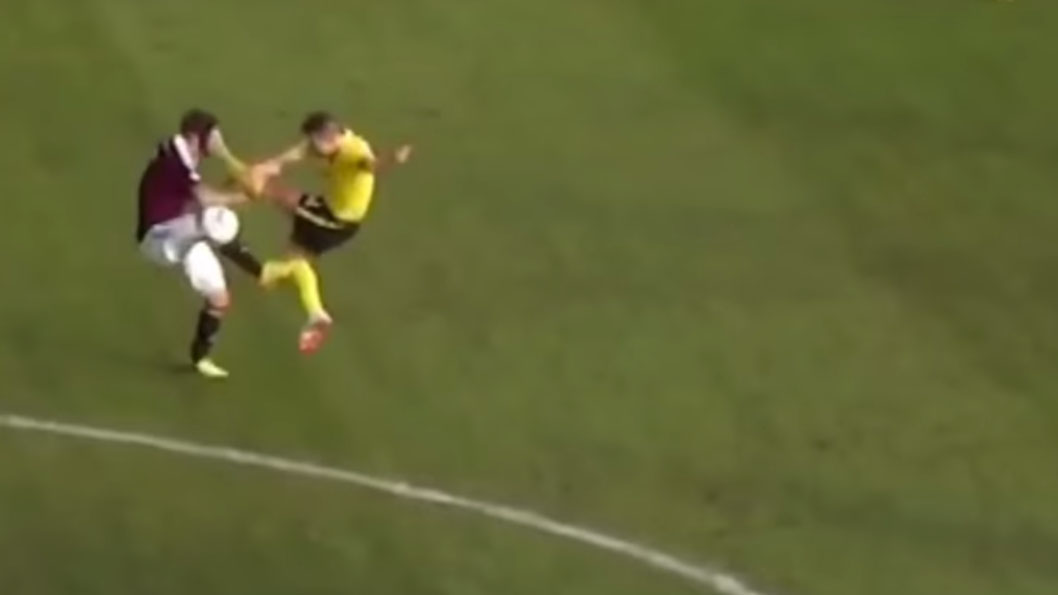 Na segundona escocesa, lateral chuta o rosto do adversário (de pé) e leva só cartão amarelo