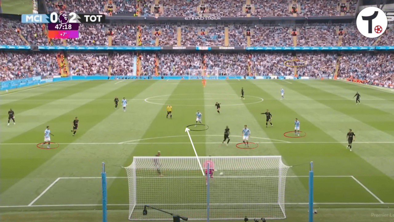 Quando algum destes pontos é quebrado, tudo pode desmoronar. Quanto mais no início da jogada houver o erro, mais perigoso se torna — e o exemplo claro é o erro de James Trafford, goleiro do Manchester City, na derrota para o Tottenham: