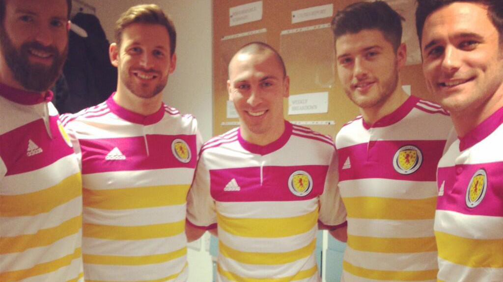 “(A camisa ) Certamente vai nos destacar da multidão, e é isso que precisamos para nos classificarmos para a Eurocopa”, disse o jogador escocês Scott Brown, talvez colocando muita fé no poder do novo uniforme da seleção escocesa.