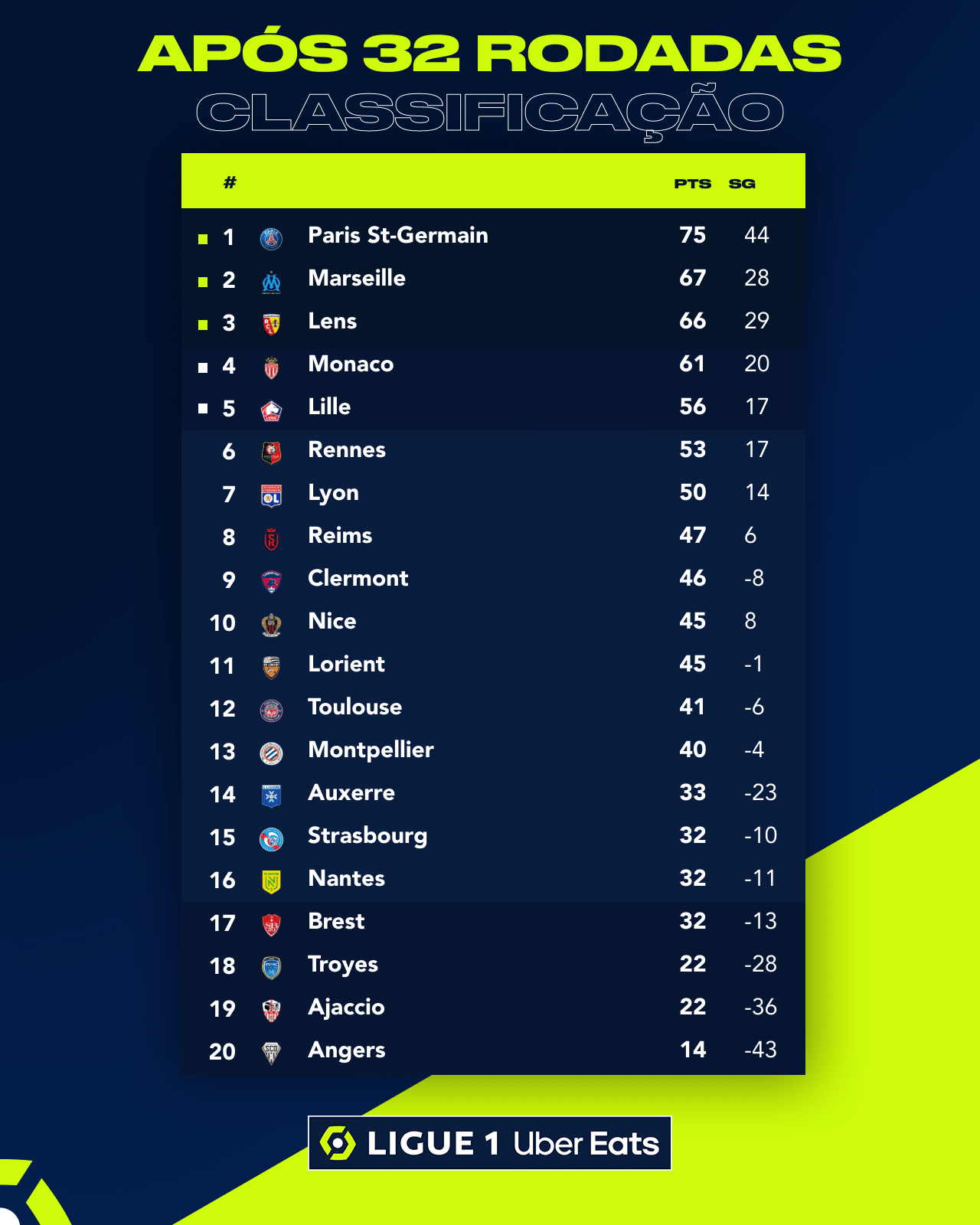 Ao finalizar menos, o Paris Saint-Germain até tentou dificultar o confronto contra o lanterna Angers, mas venceu e mantém a vantagem de oito pontos sobre o Olympique de Marseille restando seis rodadas para o fim da edição 2022/23 da Ligue 1.