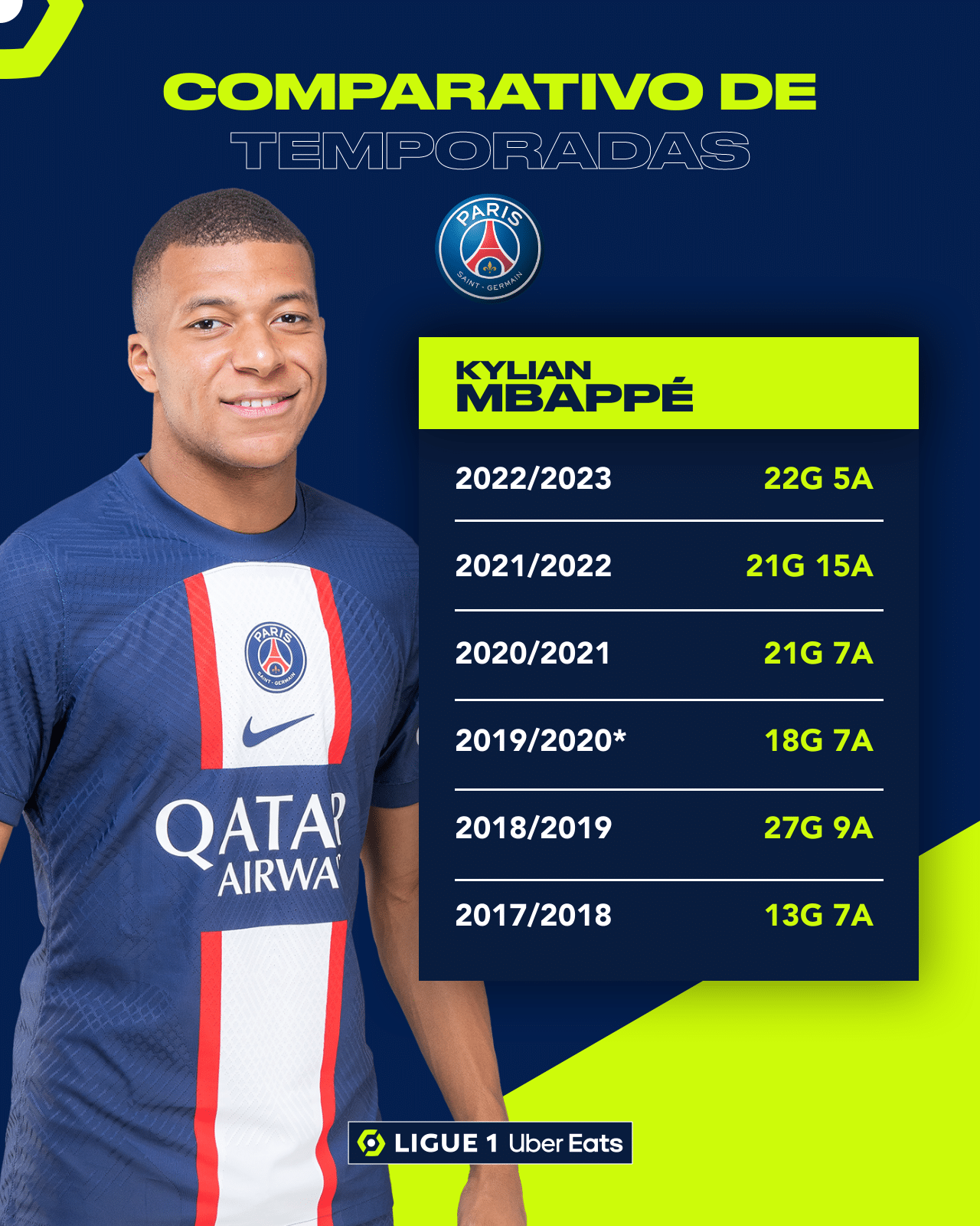 A propósito: um rápido comparativo com Mbappé nas 32ª rodadas das últimas temporadas.