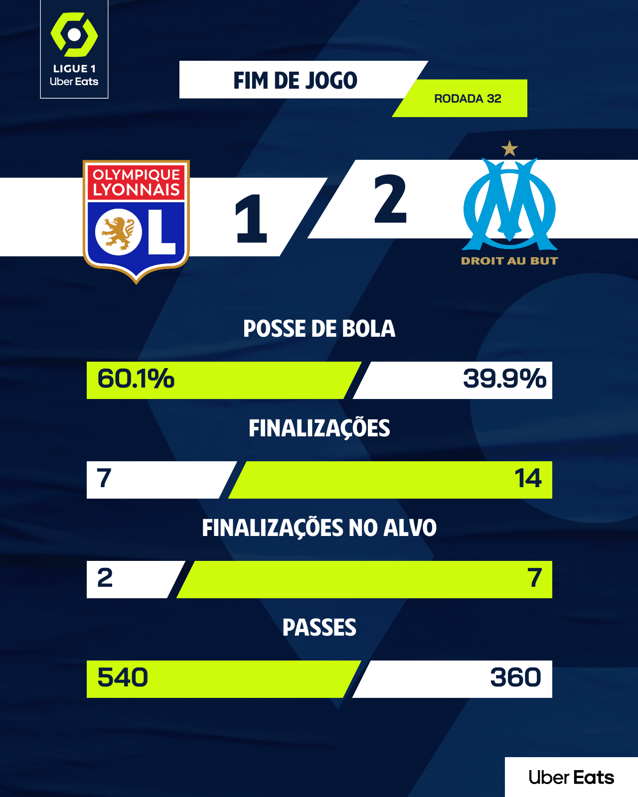 Na outra partida destacável da rodada, o Lyon, que vinha numa ascendente, perdeu em casa para o Marseille por 2 a 1 com grande ajuda de Malo Gusto.