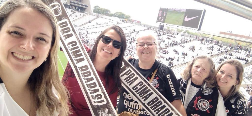 Três gerações de corintianas da mesma família viram as Brabas fazerem história na Arena, no último domingo. As gêmeas Angélica e Angelina Novelli, professoras no projeto “Muretinhas”, que acolhe crianças carentes da Grande São Paulo por meio do futebol, levaram a avó Natalina e mãe Érica – torcedoras fanáticas do Corinthians – para acompanhar a decisão. Um momento que só pôde se concretizar graças ao futebol feminino.
