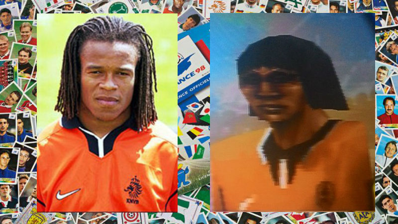 É preciso levar em conta que as opções de rosto no World Cup 98 eram limitadas. Mesmo assim, o Fenômeno de olhos puxados ou o Zidane mais parecido com o Humberto Martins frustraram o menino que resiste em mim. O Roberto Carlos está mais parecido com o Edmundo que o próprio Edmundo. Enquanto em outros países, as variações são quase nulas, com o Salas surgindo como o irmão gêmeo barbudo do Zamorano. E para não dizer que eu só cornetei, o Ali Daei ficou semelhante. Além disso, um ponto que merece amplos elogios é a precisão nos detalhes dos uniformes, respeitadas as limitações gráficas da época. Esse segue até hoje como um dos pontos altos da EA Sports naquele jogo.