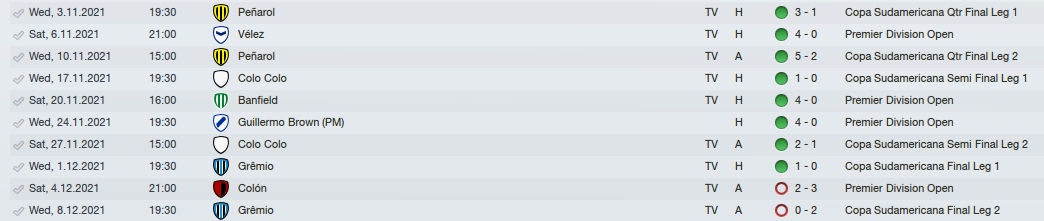 - Nas quartas de final da Copa Sul-Americana o emparelhamento nos colocou diante do Peñarol, que dificultou muito a nossa vida no começo de 2021, quando avançamos à final da Libertadores apenas nos pênaltis. Desta vez não tivemos tanta dificuldade. Em casa fizemos 3 a 1 graças a dois gols de Acciari e Mastrángelo. No jogo da volta 5 a 2 com tentos de Martín (2 vezes), Acciari (2 vezes) e Sánchez.