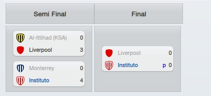 Diante dos mexicanos o Instituto voltou a ser o Instituto. Inapeláveis 4 a 0 com gols de Reboledo, Zamora, um contra e um de Benítez. Do outro lado adivinhem…. Deu Liverpool.