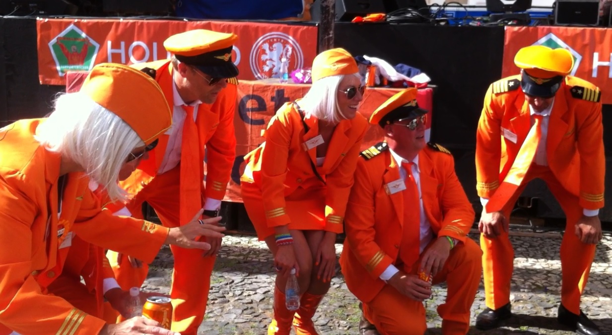 Os holandeses não pararam de cantar e nem de dançar. E o que deixa tudo muito mais engraçado é que eles não sabem fazer nenhuma dessas coisas direito, como podemos conferir no vídeo abaixo: